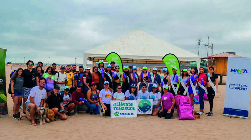 EcoPlayas retiro 111 lbs. de basura de la playa San Mateo junto a las candidatas a Reina de Manta